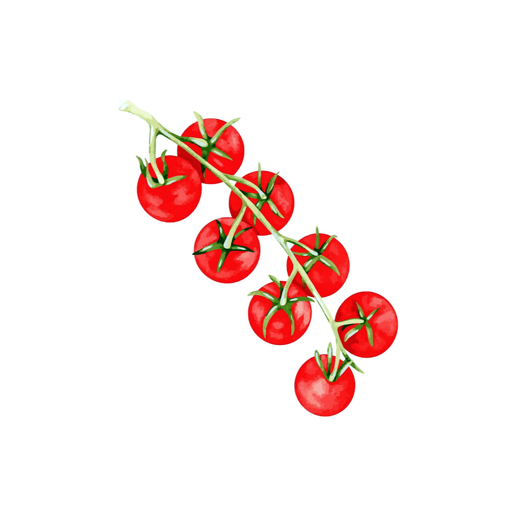 Tomate cerise : Concentré de douceur sucrée. Juteuse et parfaite en en-cas ou pour décorer les salades.
